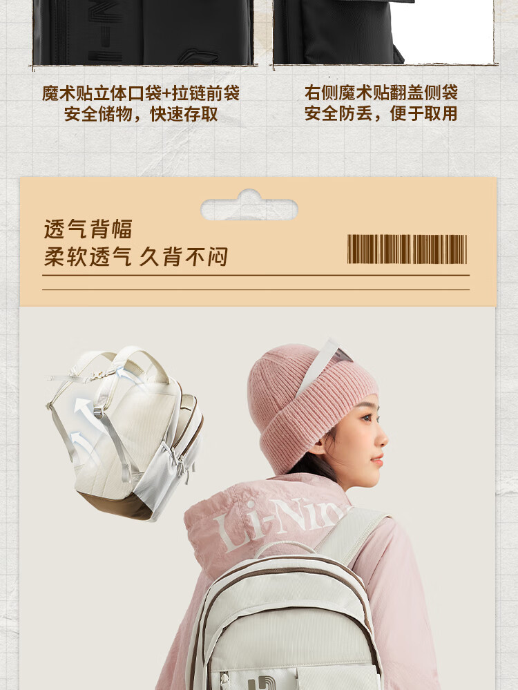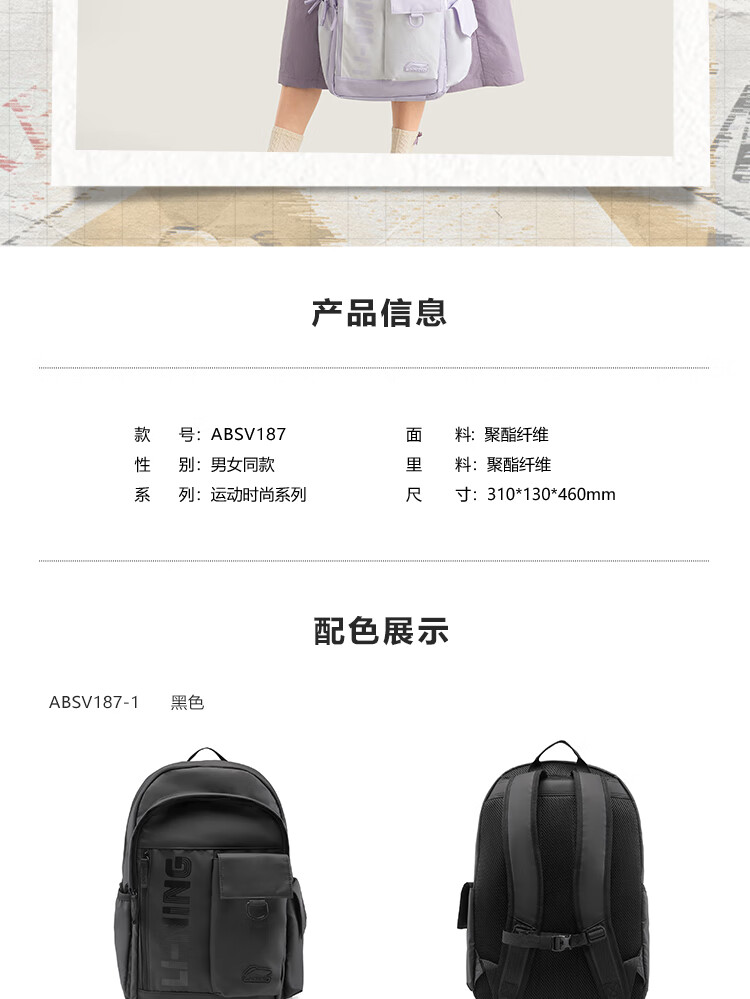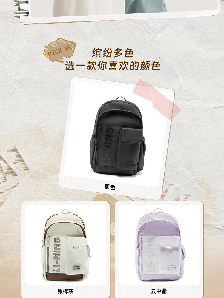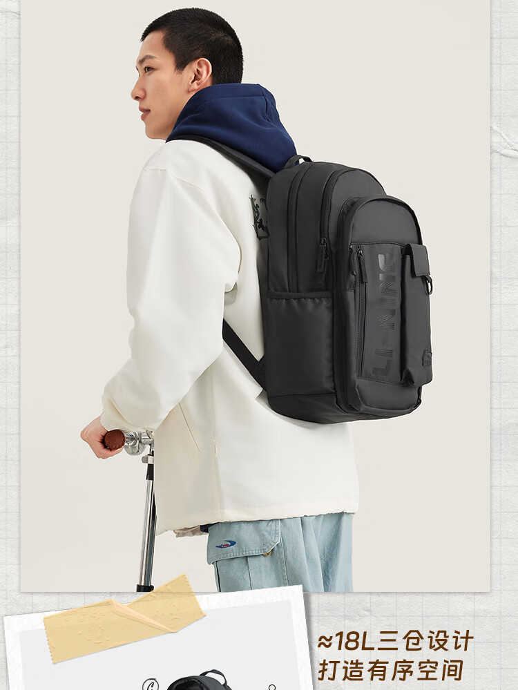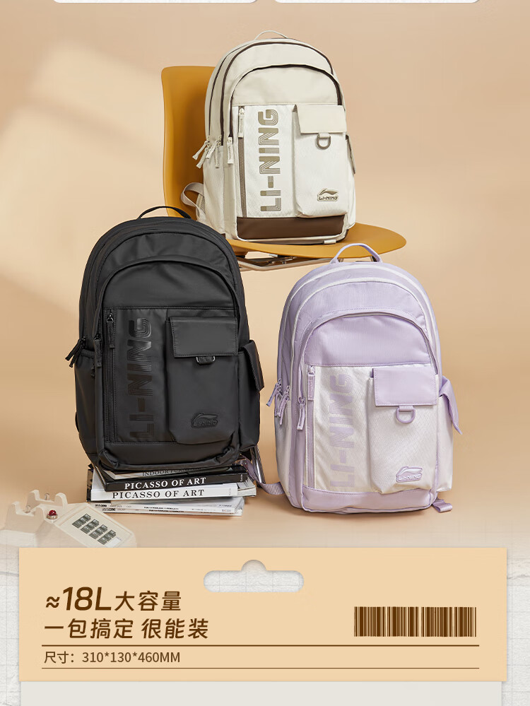 李宁运动生活系列丨运动双肩包男女同款大容量轻便旅行背包ABSV187   收藏
