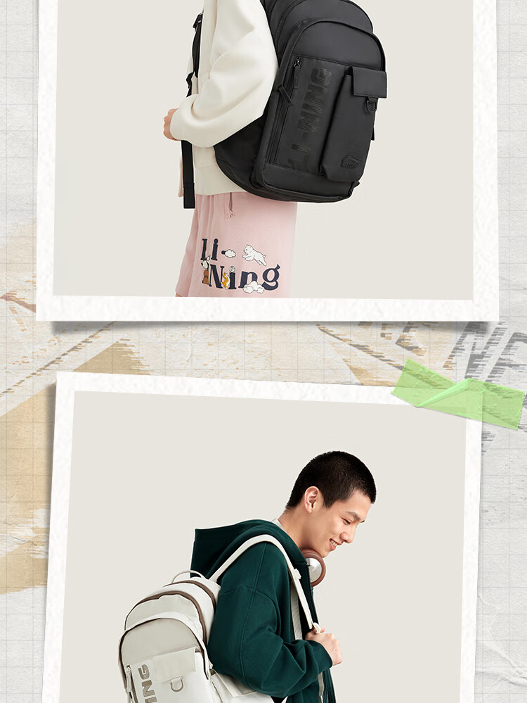 • 李宁运动生活系列丨运动双肩包男女同款大容量轻便旅行背包ABSV187