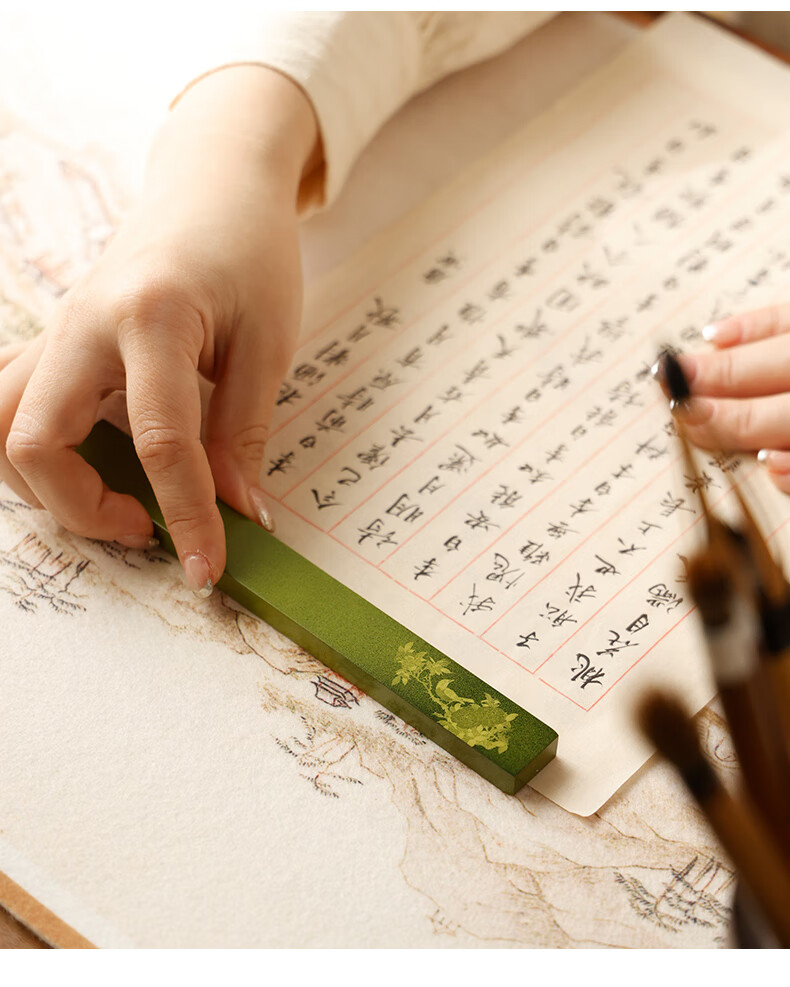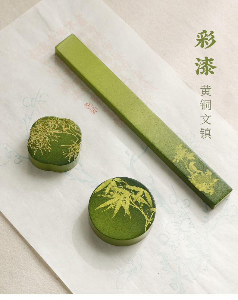 • 漢墨 彩漆黄铜花鸟镇尺 镇纸创意古风书法压尺文镇2支礼盒装文房四宝高颜值铜器摆件礼物