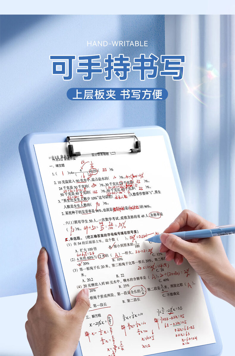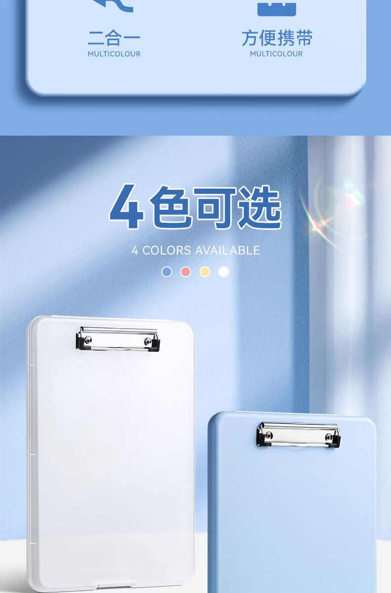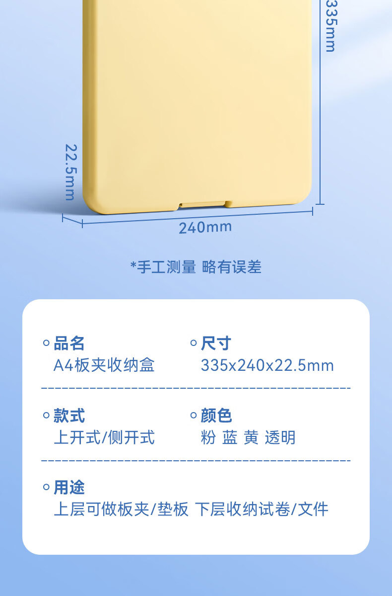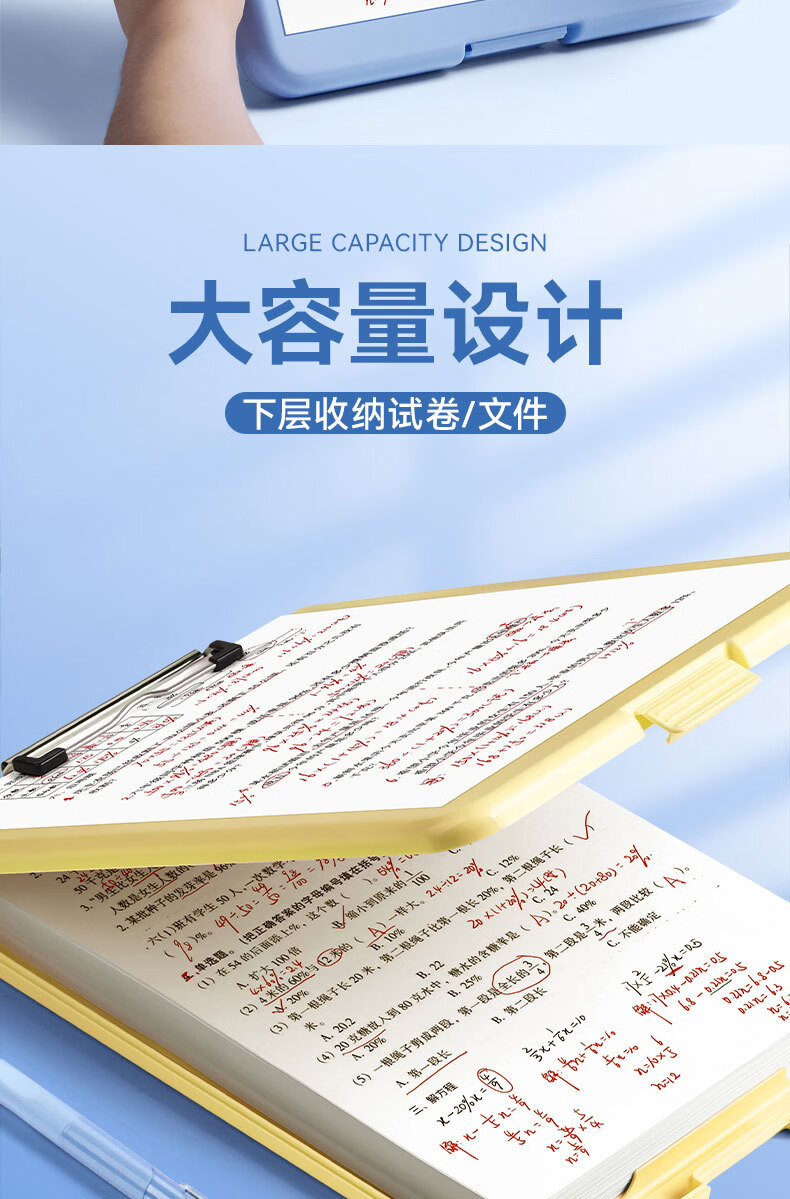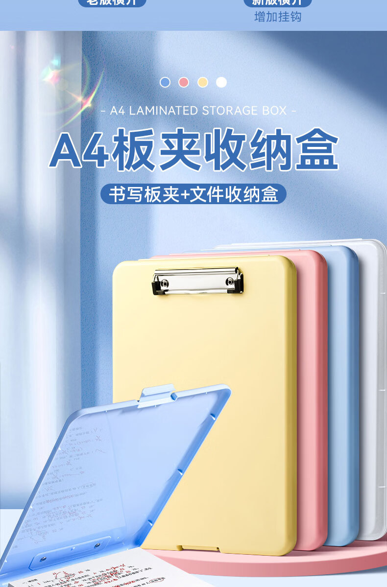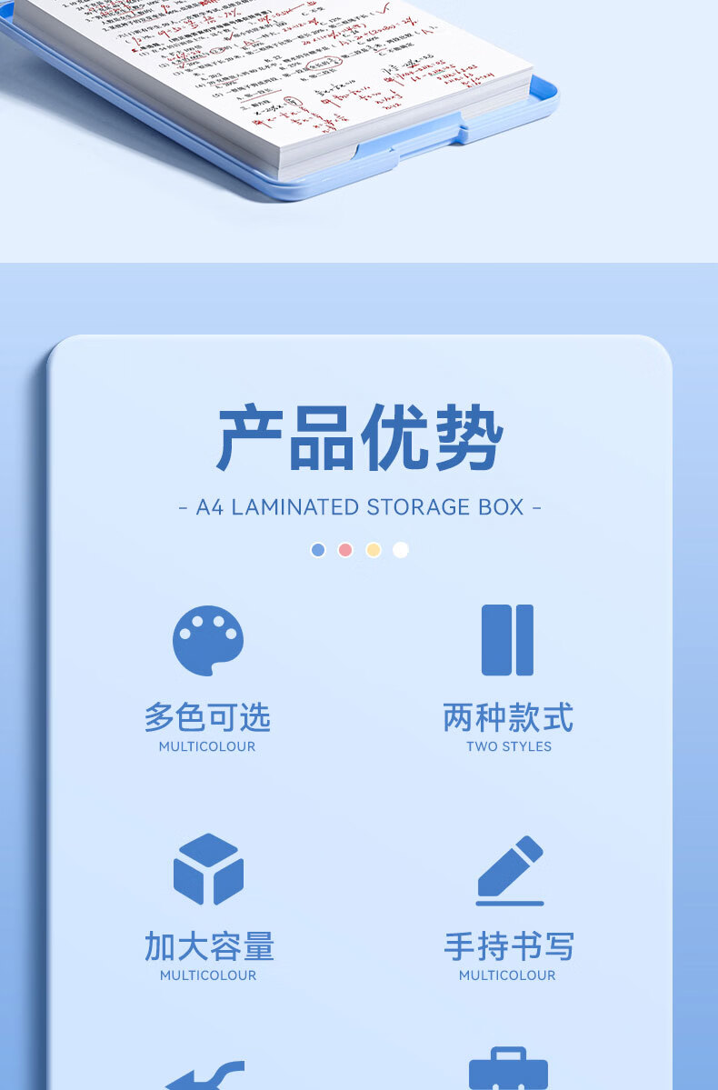• 反转A4写字垫板收纳盒板夹小学生专用文件夹试卷收纳整理大容量档案盒文件资料盒1个【晴空蓝】竖开