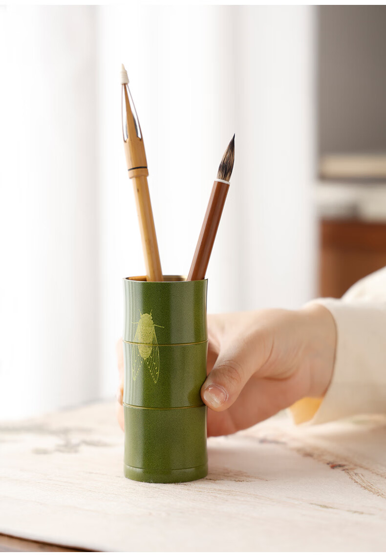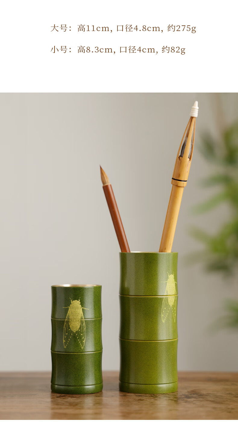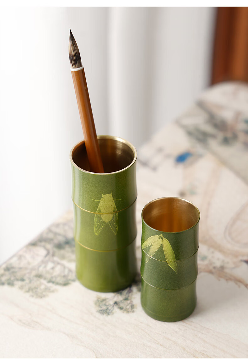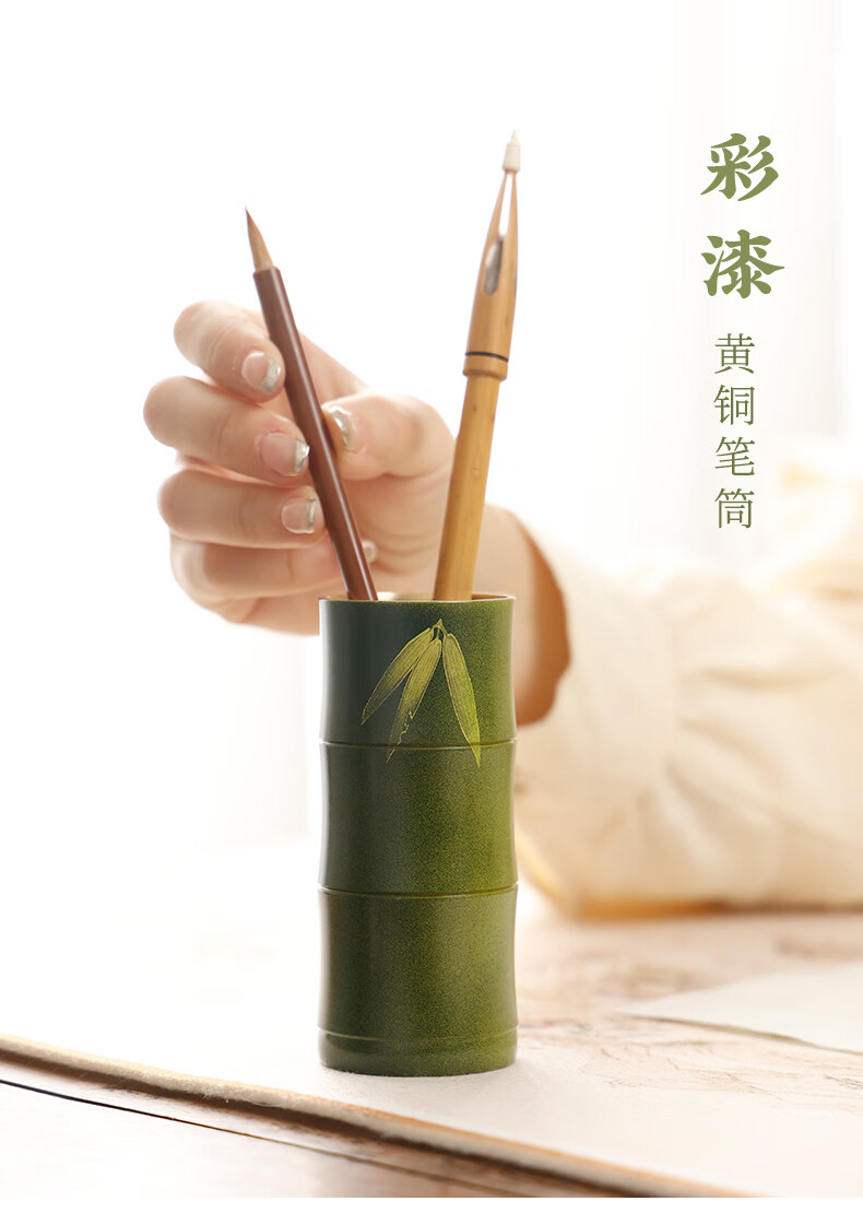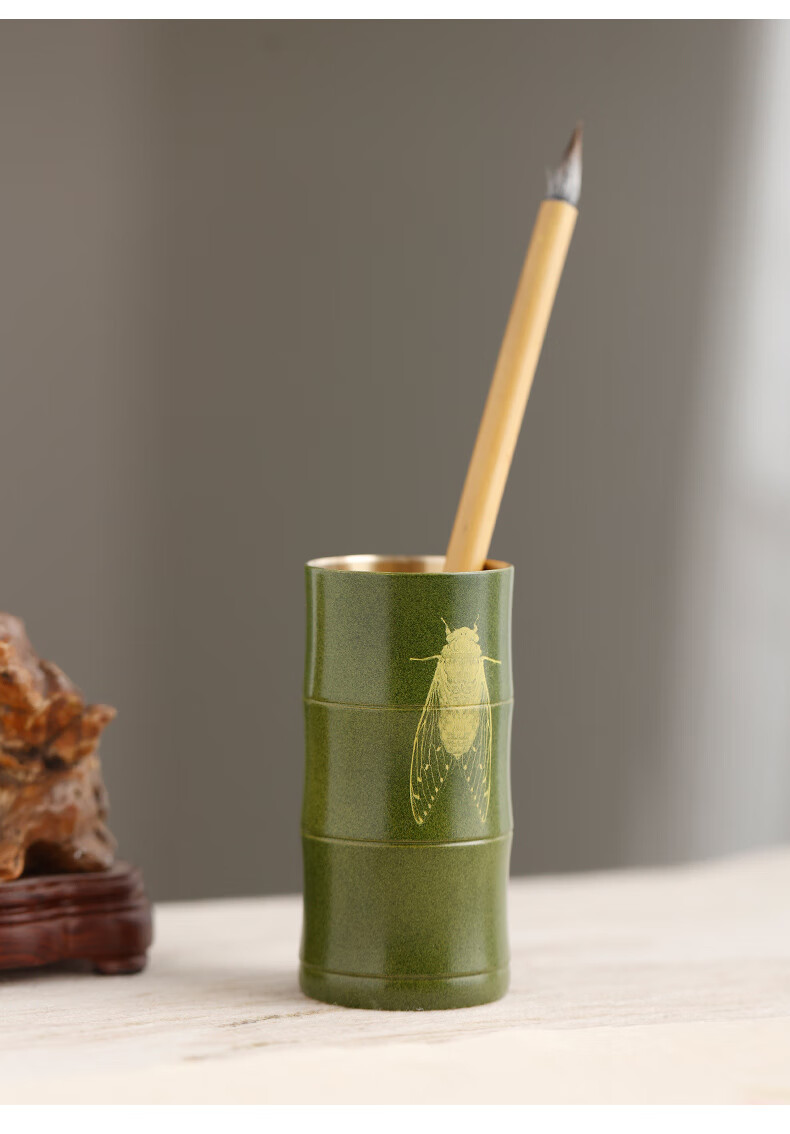 • 漢墨 黄铜彩漆笔筒蝉鸣大号笔筒 创意中国风毛笔收纳办公 文房四宝高颜值高档工艺品铜器摆件