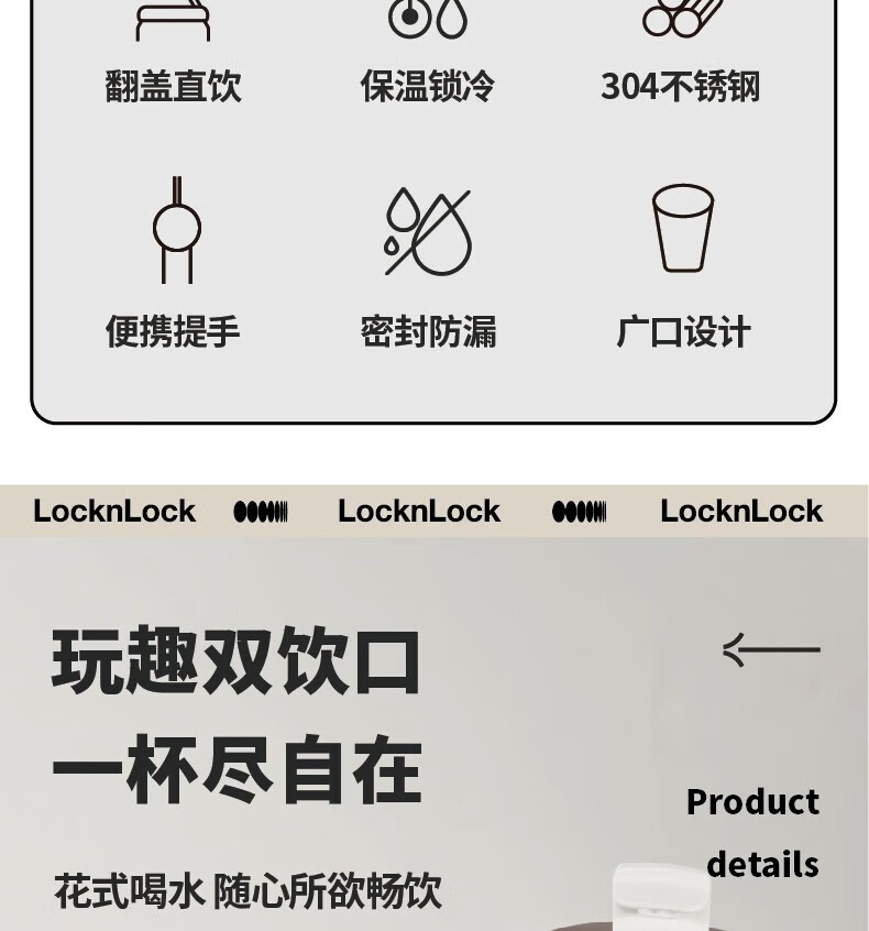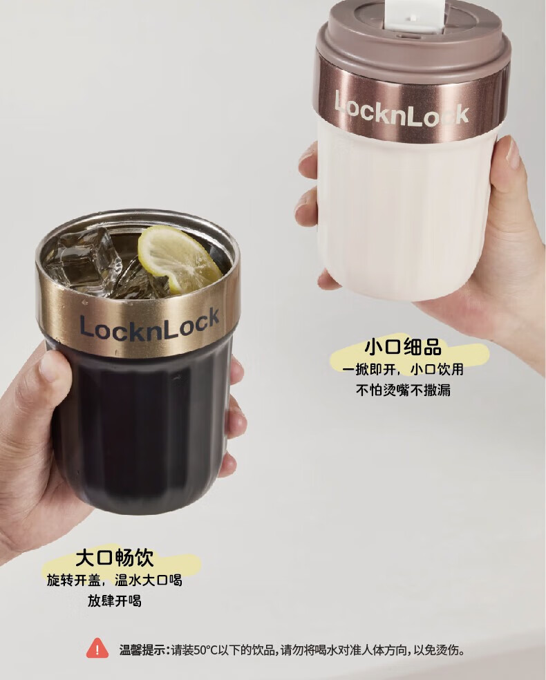 • 乐扣乐扣(LOCK&LOCK)潮酷咖啡杯保温锁冷密封随行杯350mL LHC6799FU白金