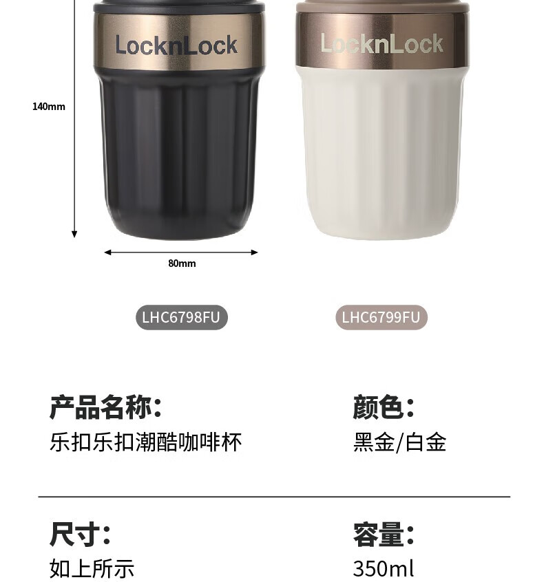 乐扣乐扣(LOCK&LOCK)潮酷咖啡杯保温锁冷密封随行杯350mL LHC6799FU白金   收藏