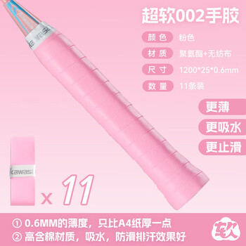 川崎(KAWASAKI)羽毛球手胶拍柄减震防滑光面吸汗带超软002 粉色(11条装)   收藏
