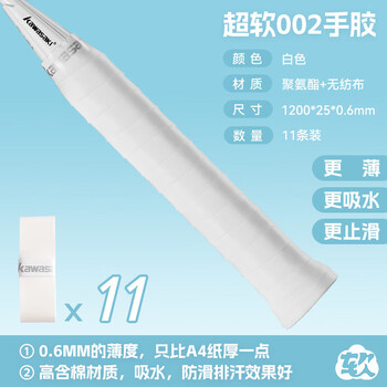 川崎(KAWASAKI)羽毛球手胶拍柄减震防滑光面吸汗带超软002 白色(11条装)   收藏