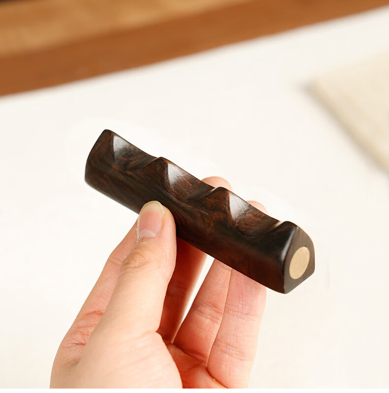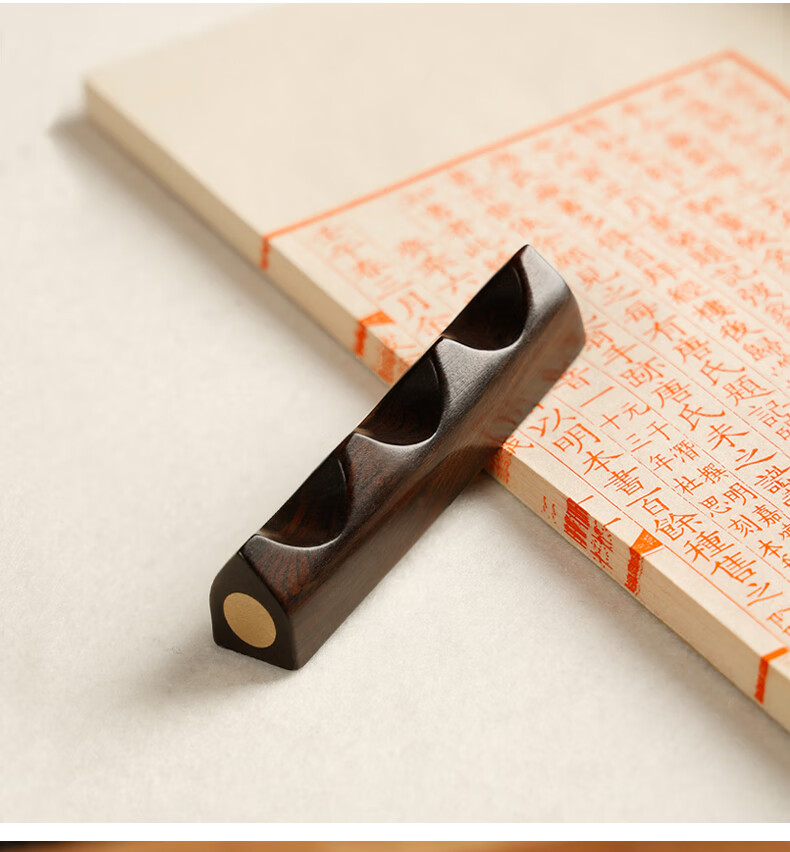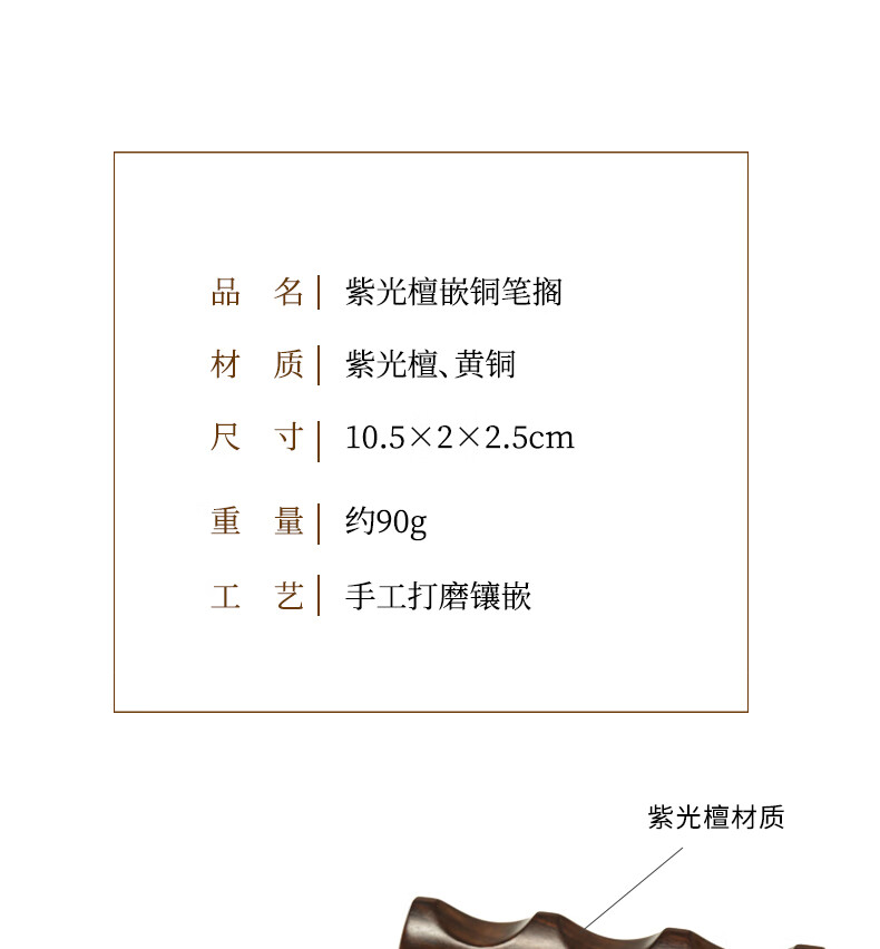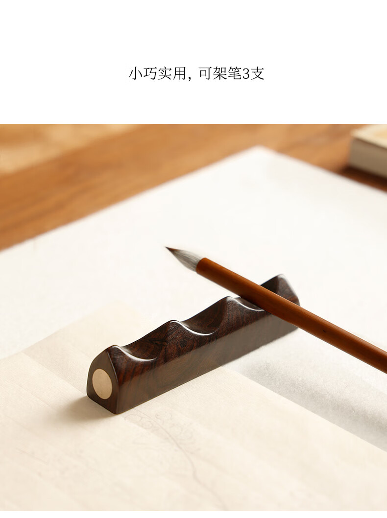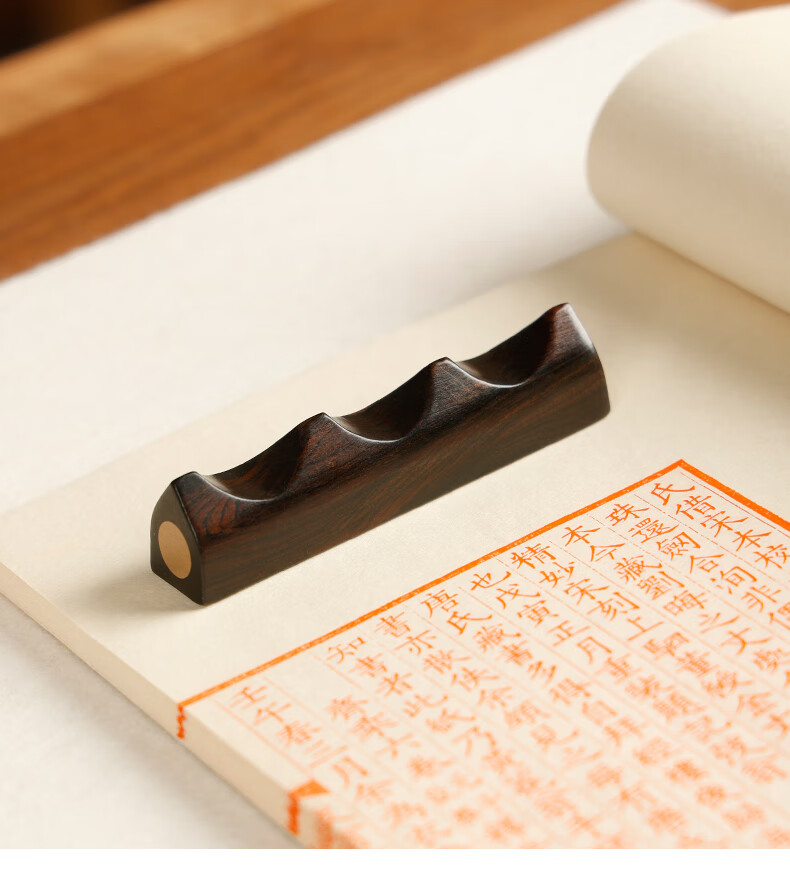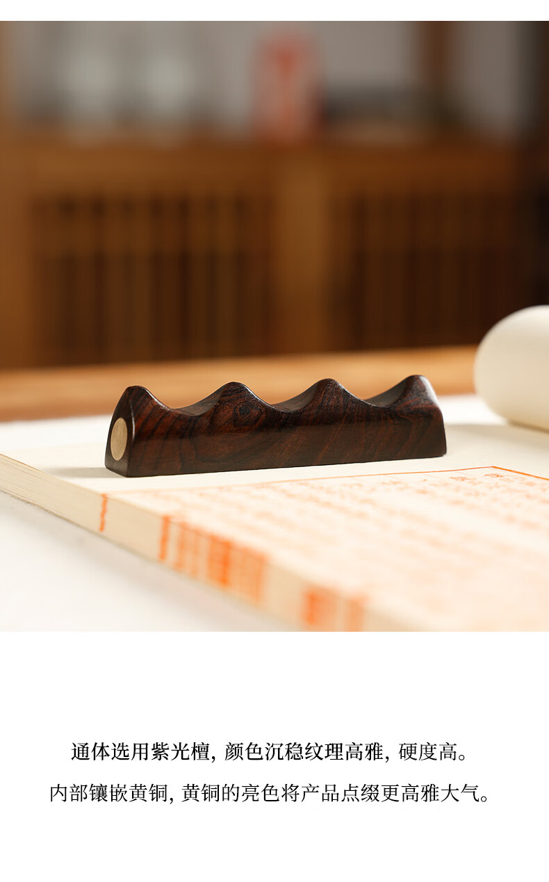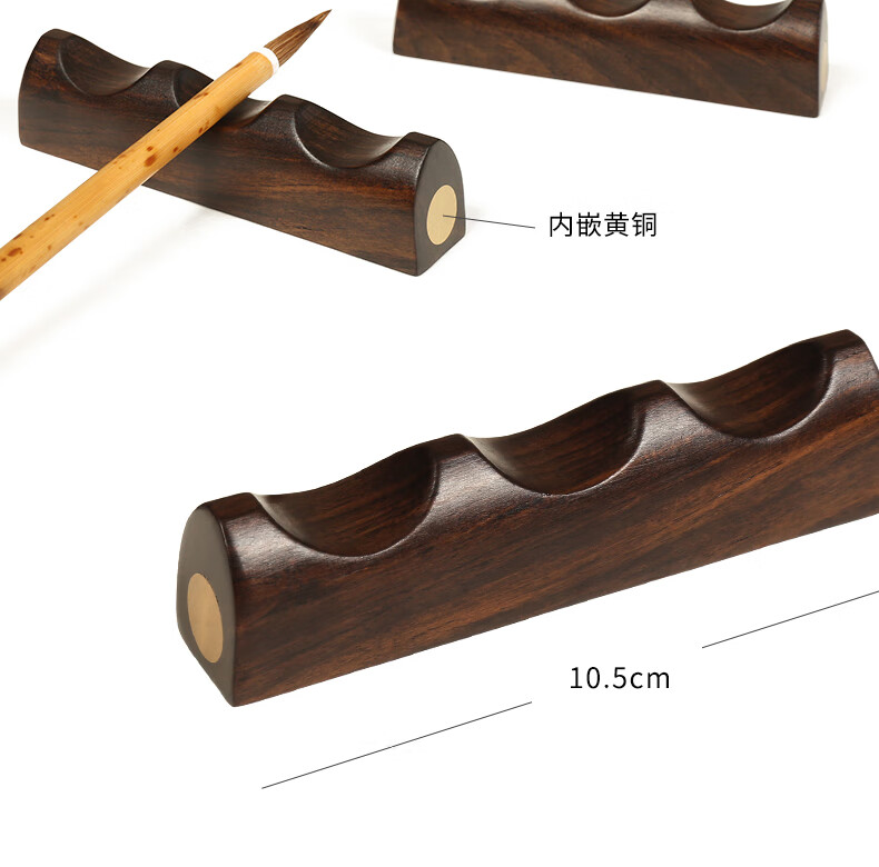 • 漢墨 紫光檀木嵌铜笔架  简约实用毛笔架笔搁笔山 文房四宝多功能镇纸镇尺