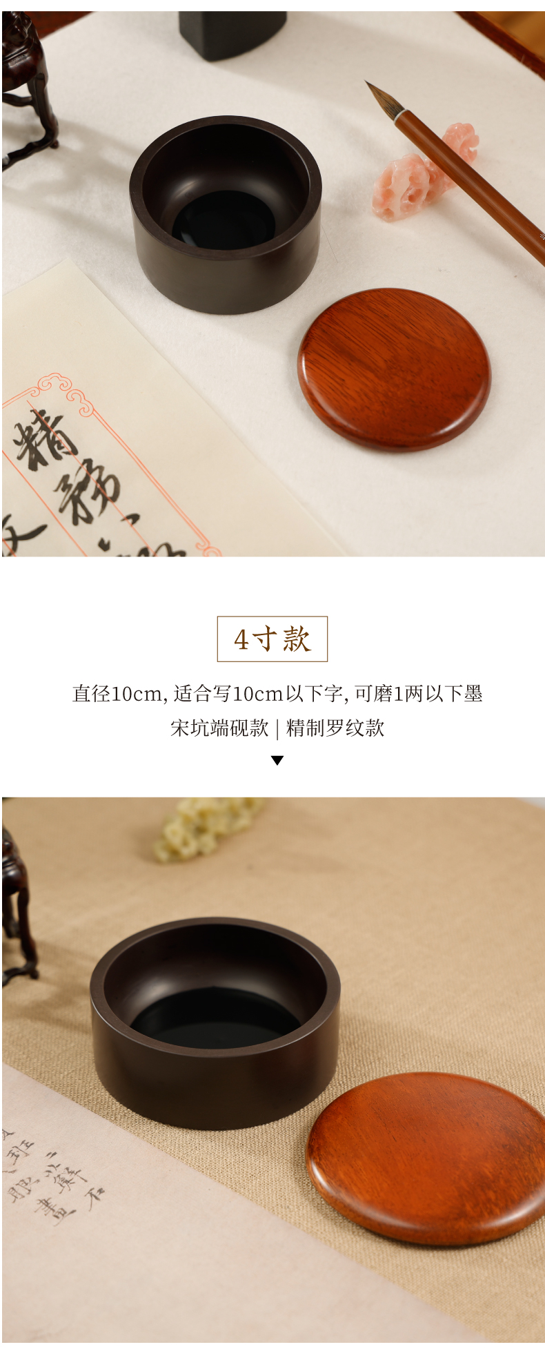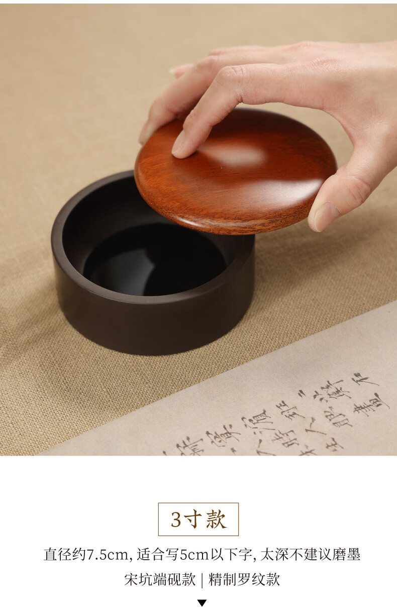 漢墨宋坑端砚4寸墨池 砚台原石带盖墨海 文房四宝毛笔书法墨汁用品   收藏