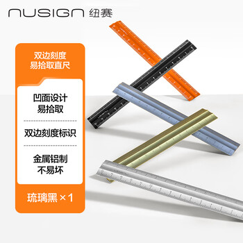 纽赛(NUSIGN)双边刻度铝制易拾取直尺 15cm琉璃黑款 防滑设计/轻巧便捷/不易磨损/刻度清晰/金属质感 NS091   收藏