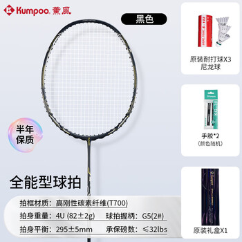 薰风(KUMPOO)羽毛球拍高刚性碳纤熏风进攻型球拍 小能量黑色礼盒装(已穿线)   收藏