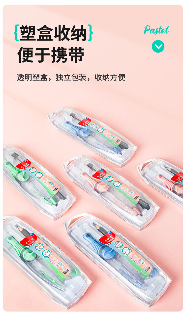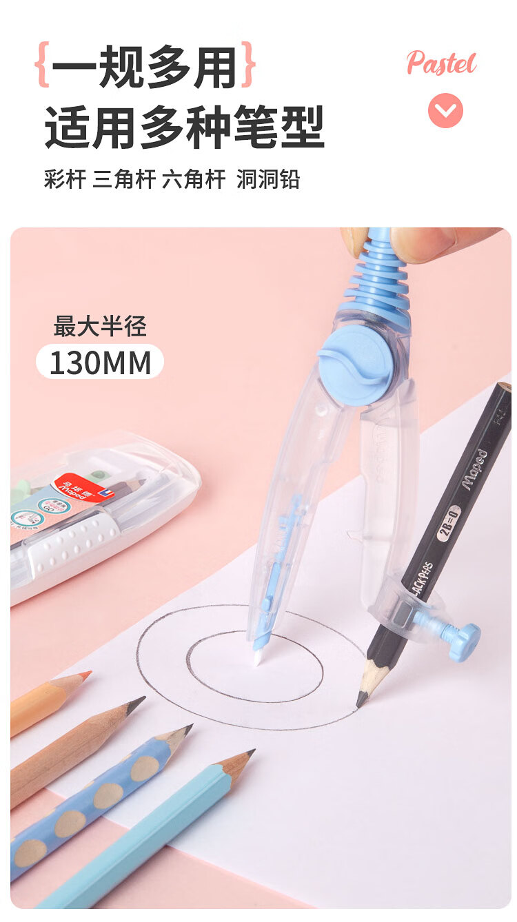 马培德(Maped)淡彩零金属经典绘图圆规 初高中考试圆规 学生制图绘图学习工具 192816CH 蓝色【2B铅笔款/卡装】   收藏