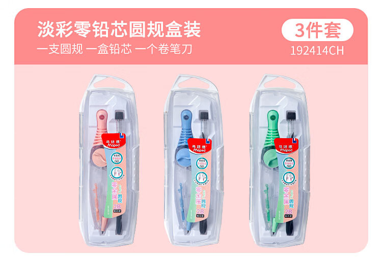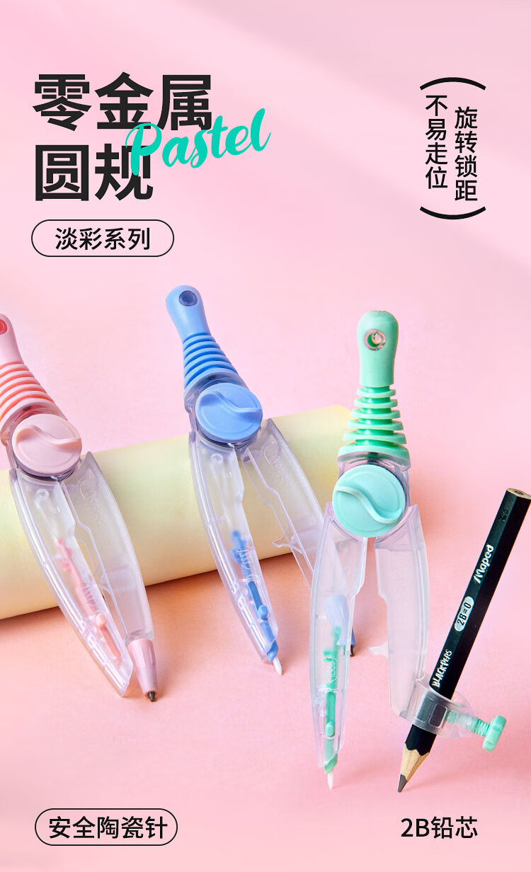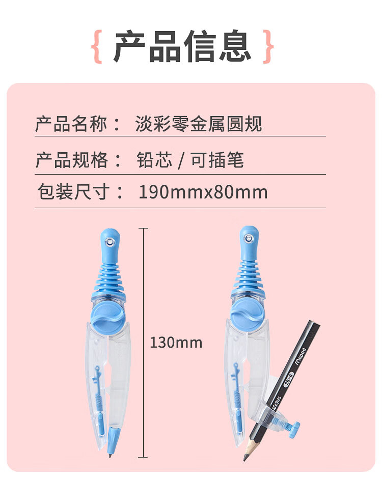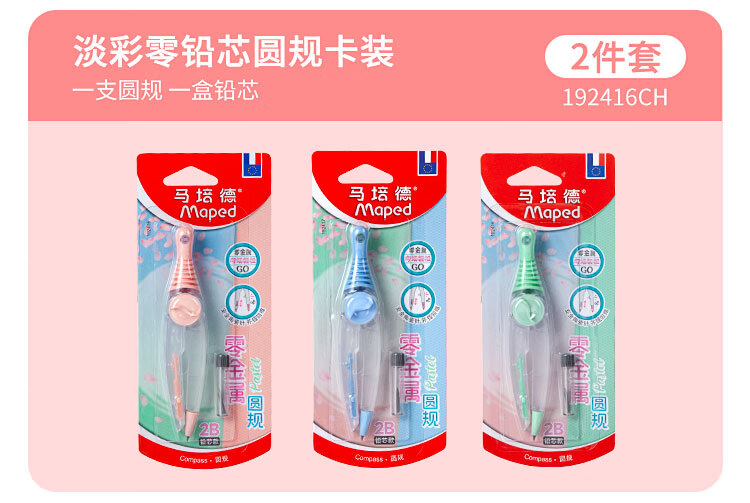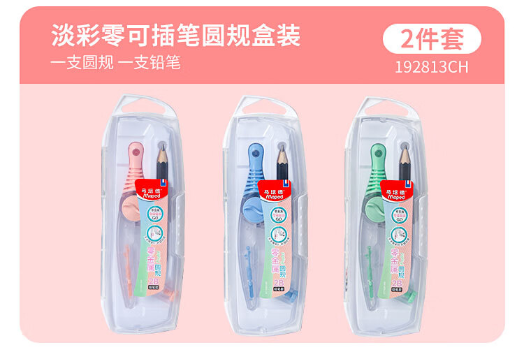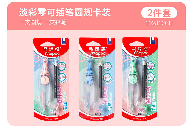 • 马培德(Maped)淡彩零金属经典绘图圆规 初高中考试圆规 学生制图绘图学习工具 192816CH 蓝色【2B铅笔款/卡装】