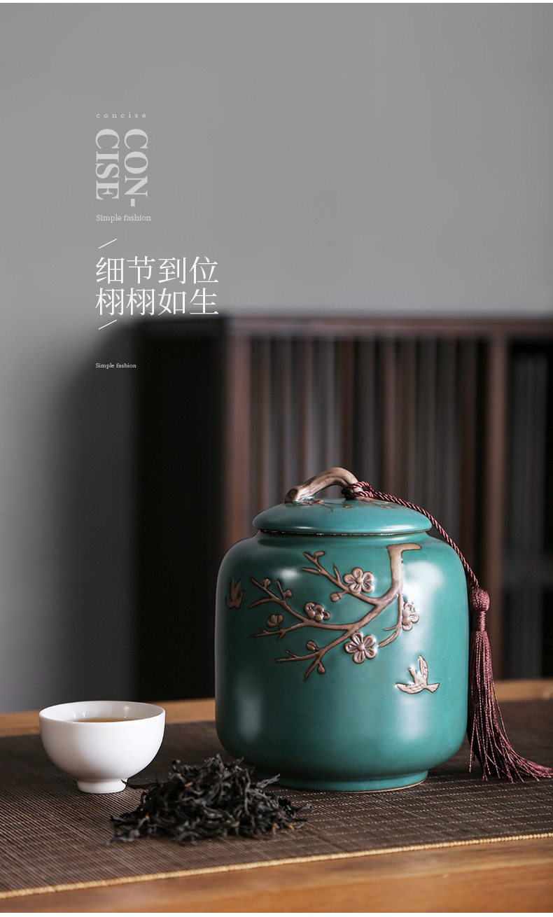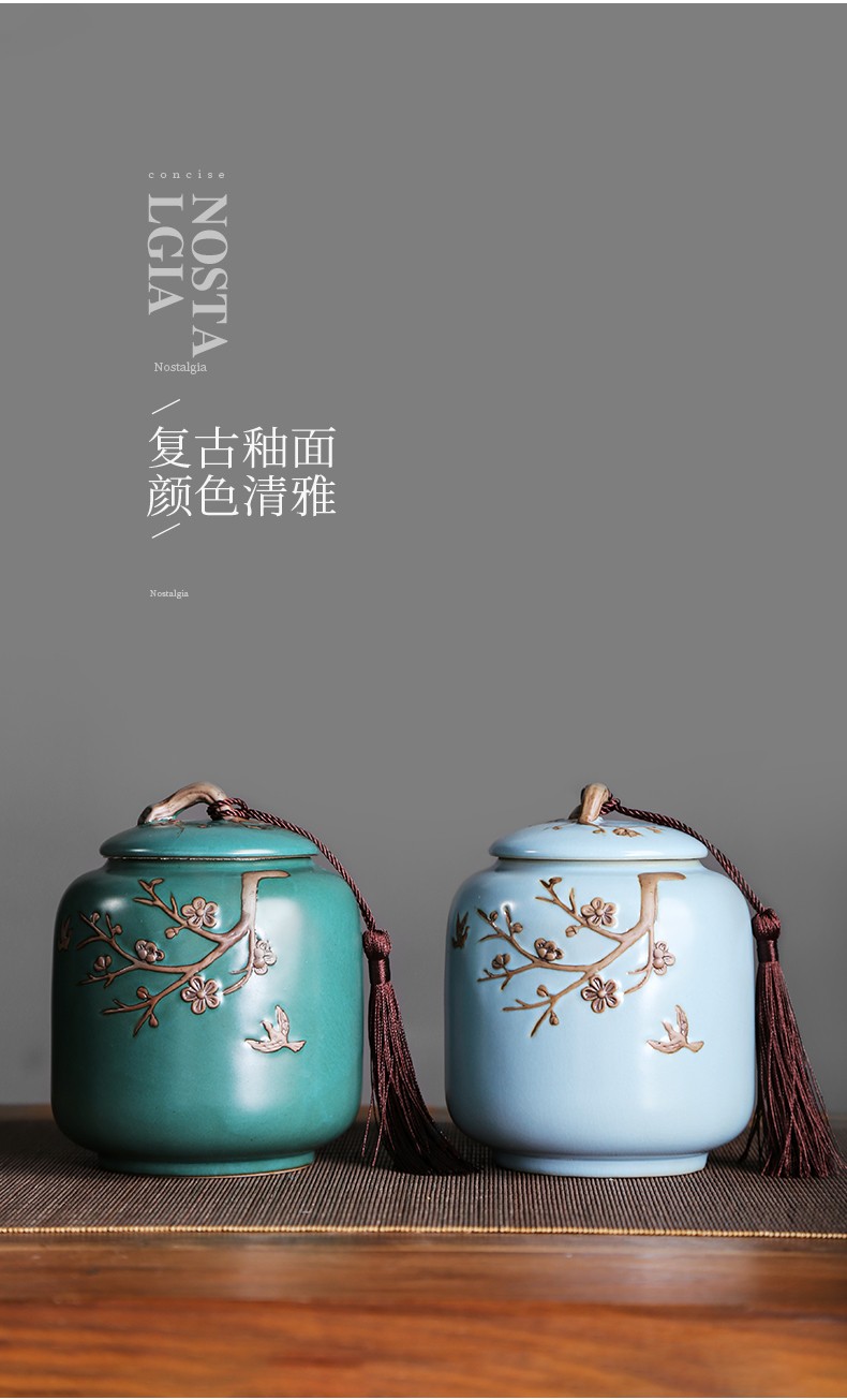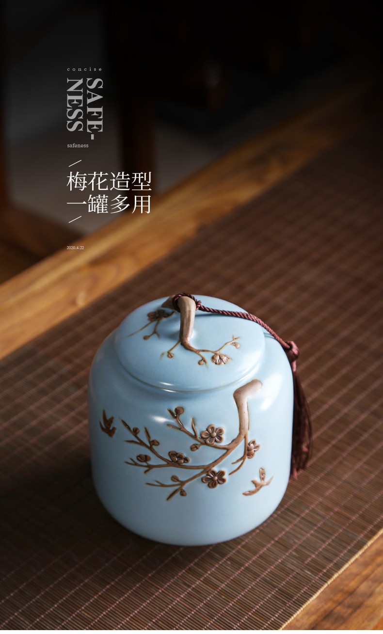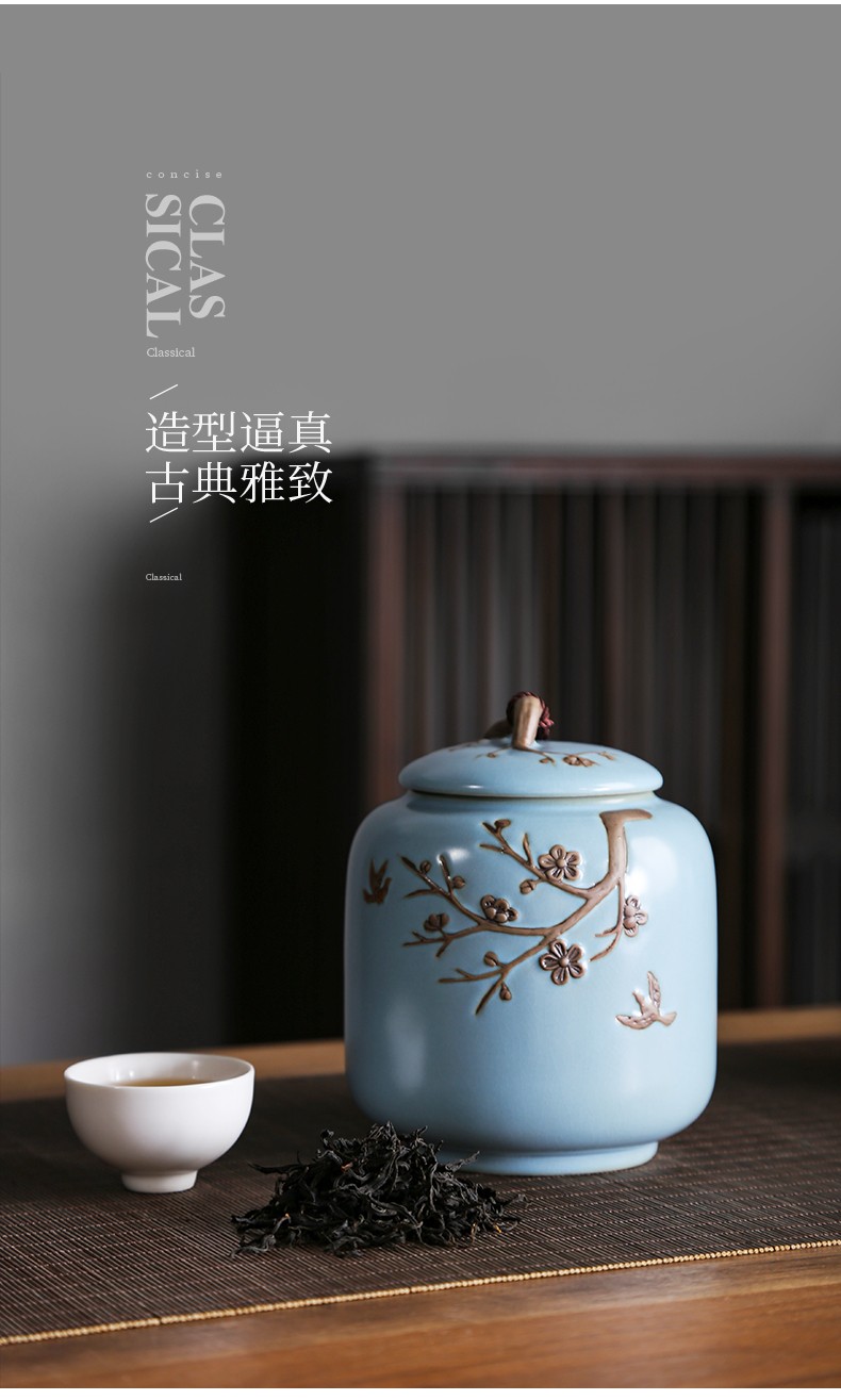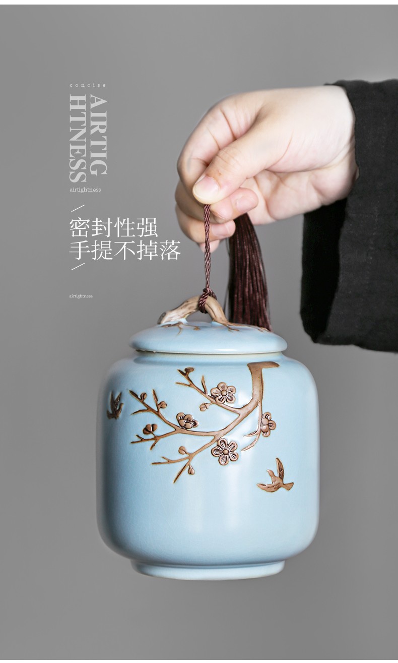 • 茶艺贵族梅花雁(天青)茶叶罐中式大号陶瓷储茶罐密封罐茶罐功夫茶具配件