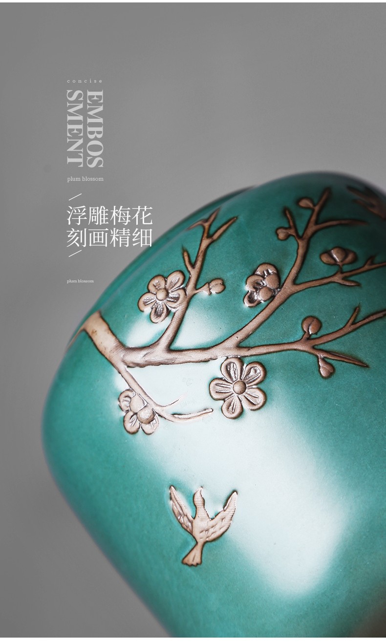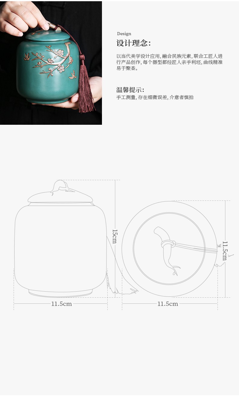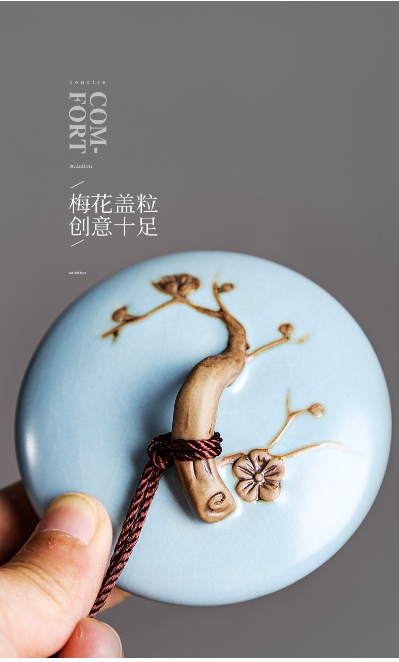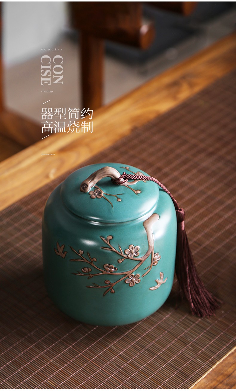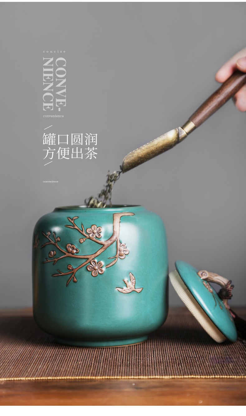 • 茶艺贵族梅花雁(天青)茶叶罐中式大号陶瓷储茶罐密封罐茶罐功夫茶具配件