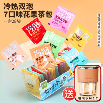 • 艺佰7口味冷泡茶原叶花果茶包蜜桃桂花茉莉绿茶柠檬红茶袋泡茶28袋*4g
