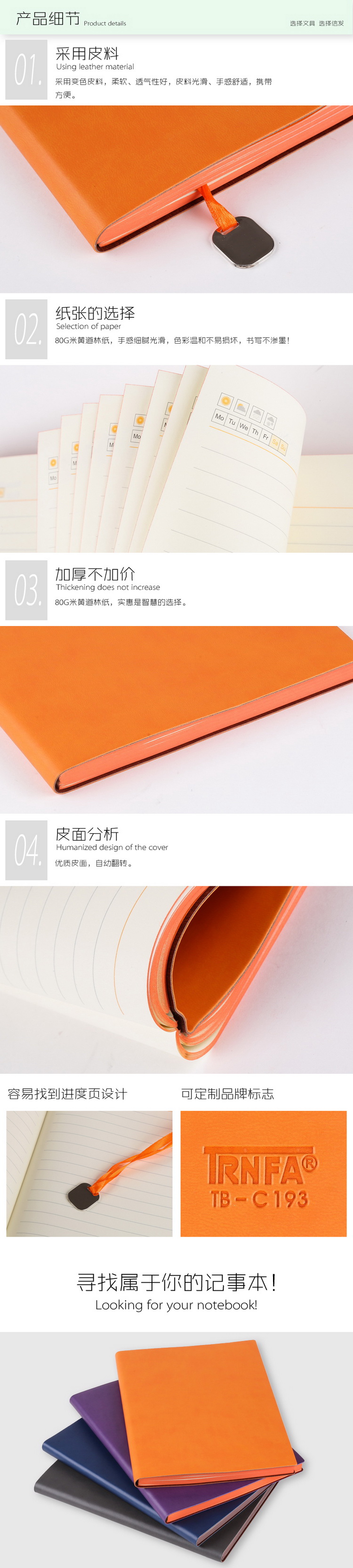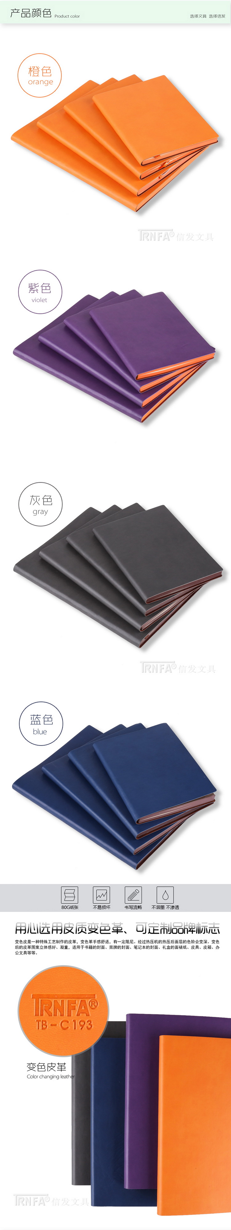 信发 TRNFA TB-H197 彩色时尚进口变色PU记事本高级商务笔记本 软皮面记事薄创意办公文具(浅灰色18K)   收藏