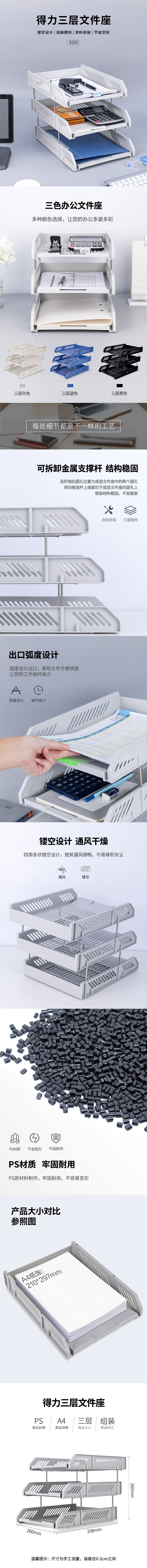 得力(deli)三层镂空收纳文件座自由拆卸组装文件盘/文件框栏桌面档案收纳盒文件置物架管理 灰色9209   收藏