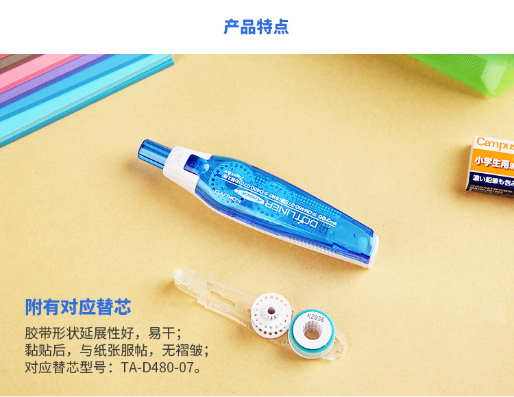 国誉(KOKUYO)笔式点点胶双面胶带本体 7mmx8m蓝色1个 TA-DM480-07B   收藏