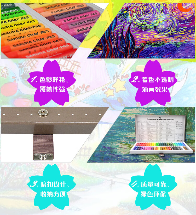 • 【全网低价】樱花(SAKURA)油画棒蜡笔50色套装 精装礼物礼盒款 儿童安全绘画画笔美术彩绘工具玩具美术写生
