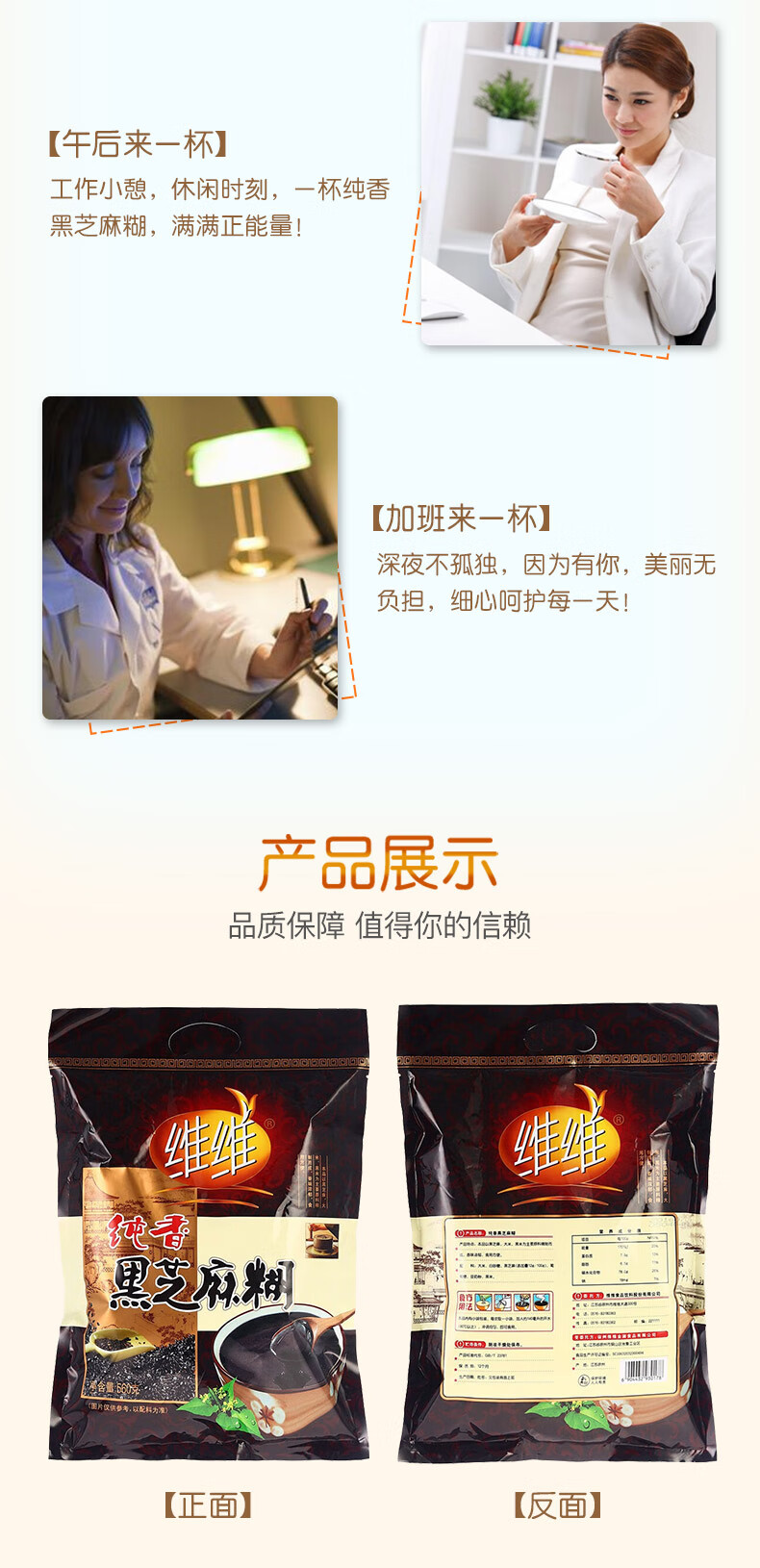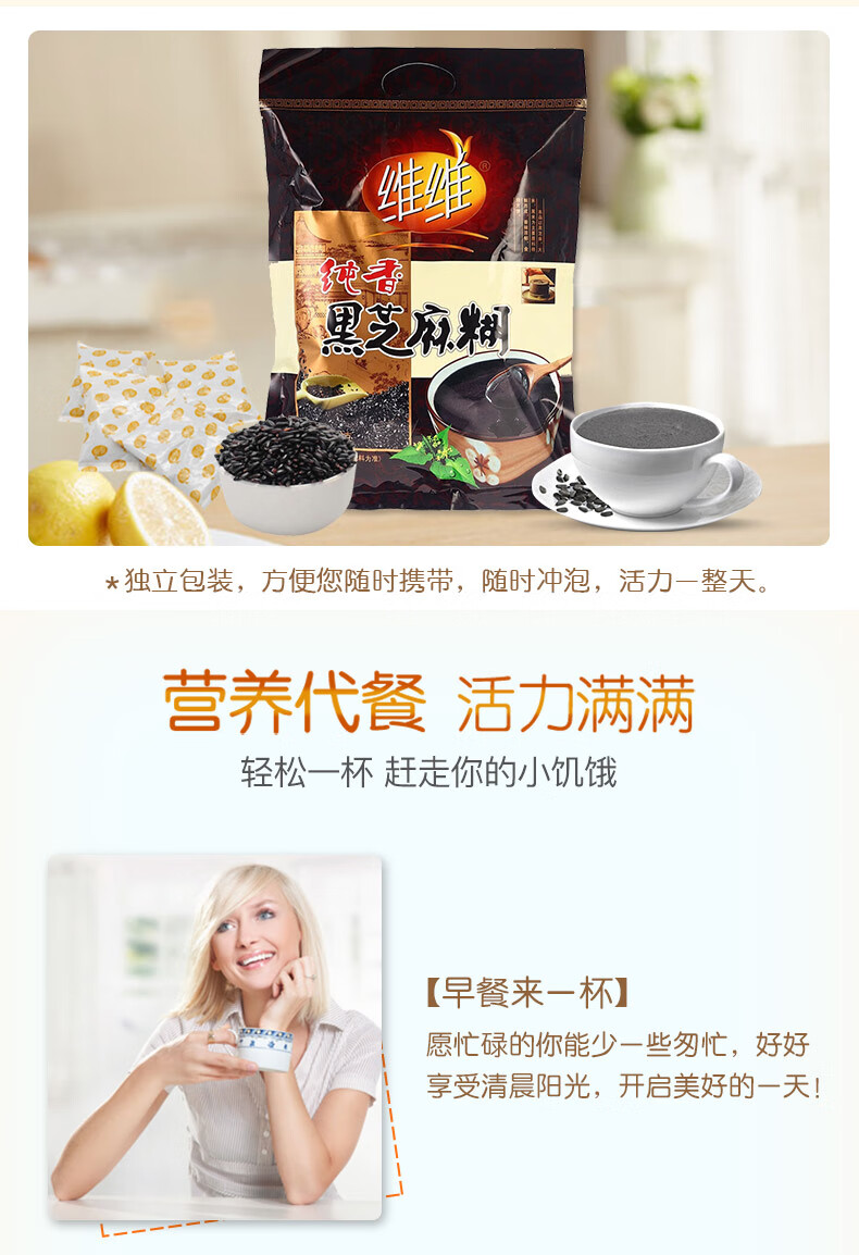 供应商:京东 品牌:维维 产地:江苏徐州 重量:0.600 销售单位:袋 包装清单:纯香黑芝麻糊560g*1 售后信息:不支持7天无理由退货