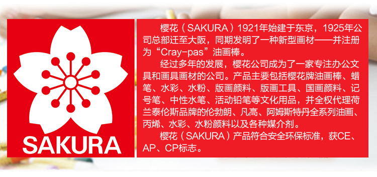 樱花(SAKURA)油画棒蜡笔专业艺术级36色套装方形笔杆美术生手绘涂鸦绘画画笔画家专用彩绘棒美术写生   收藏
