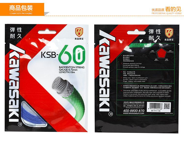 川崎KAWASAKI羽毛球拍线网线0.72mm高弹耐久型纳米技术KSB-60 白色   收藏