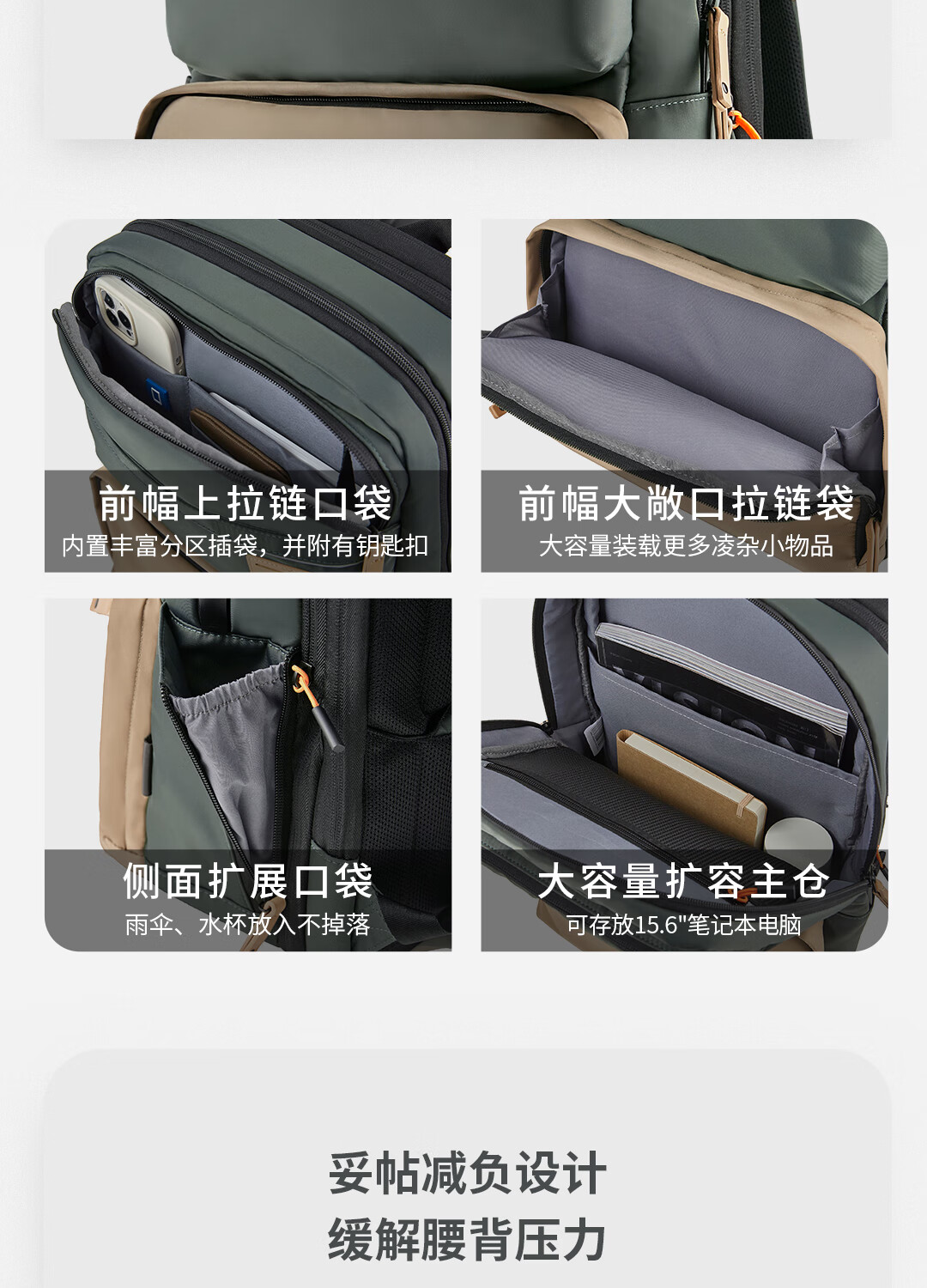 爱可乐(Echolac)双肩电脑包大容量可扩展17英寸书包旅行背包送男友CKP658黑色   收藏