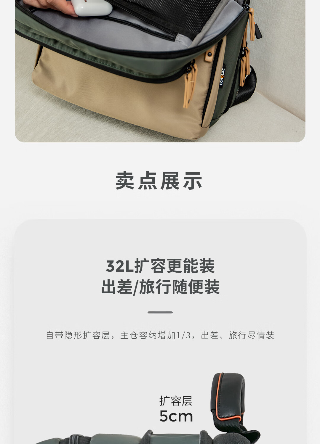 • 爱可乐(Echolac)双肩电脑包大容量可扩展17英寸书包旅行背包送男友CKP658黑色