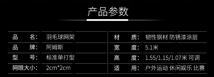 阿姆斯AMUSI羽毛球网架 便携式移动羽毛球架 5.1米标准型 可调节高度 赠球网   收藏