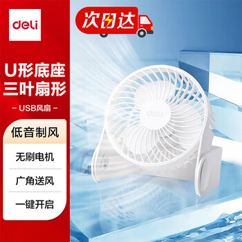 • 得力USB桌面风扇速迷你轻音家用卧室办公室台式风扇宿舍桌面学生宿舍风扇 U型底座小台扇/电风扇 白
