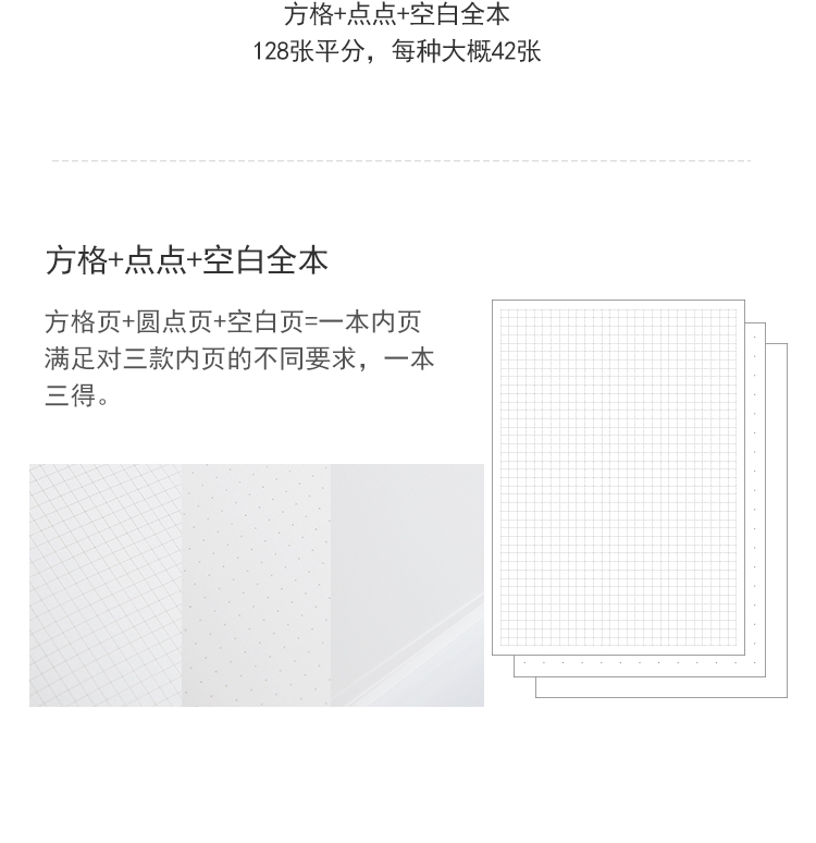 kinbor三拼128张A6手帐本子内芯/手账本内页替芯(空白/圆点/方格)升级版DTB6614-1伴手礼   收藏