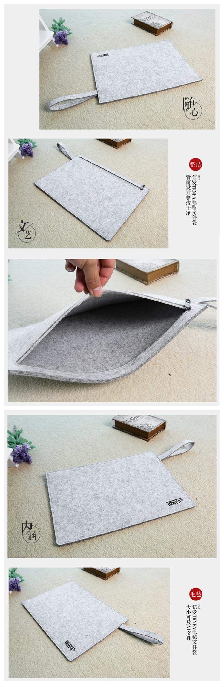 • 信发 TRNFA MZ-109 横版灰色毛毡文件袋/手拎拉链公文包 办公生活收纳袋/A4资料套/笔记本保护套袋