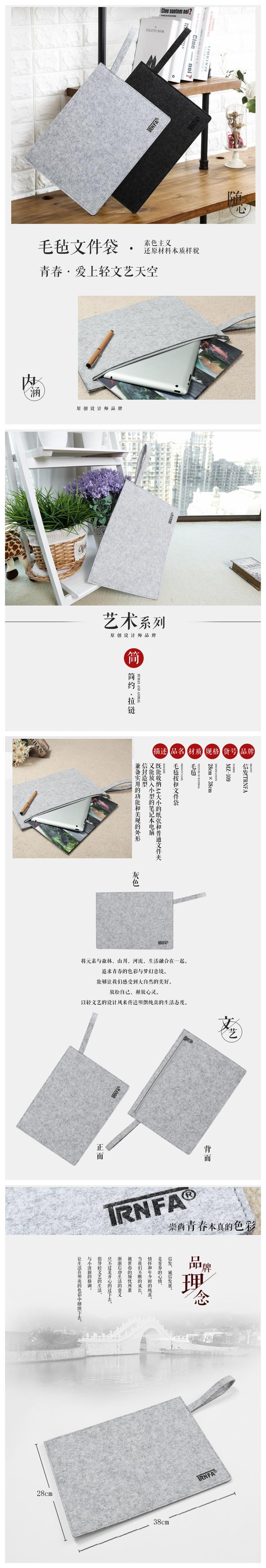 信发 TRNFA MZ-109 横版灰色毛毡文件袋/手拎拉链公文包 办公生活收纳袋/A4资料套/笔记本保护套袋   收藏
