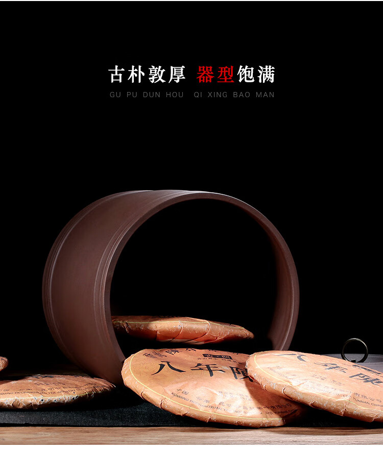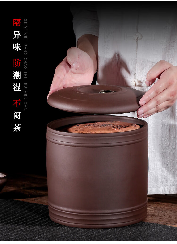 • 金镶玉原矿紫砂普洱茶罐茶具密封储藏罐茶具配件 大号圆润茶叶罐