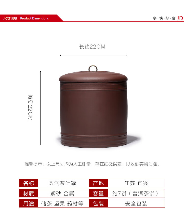 供应商:京东 品牌:金镶玉 产地:中国宜兴 重量:3.550 销售单位:个 包装清单:茶叶罐1个 售后信息:不支持7天无理由退货