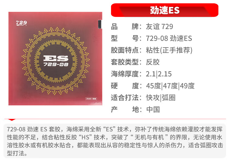 • 729 套胶729-08ES劲速 乒乓球拍胶皮反胶 黑色47度