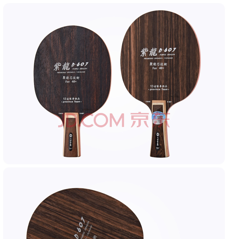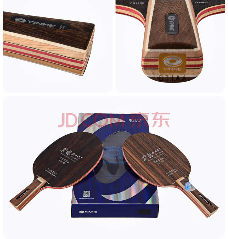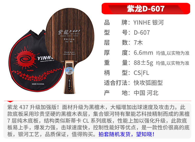 • 银河 乒乓球底板乒乓球拍横板横拍 紫龙D-607黑檀七 附拍套