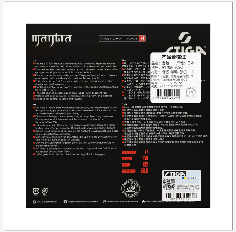斯帝卡STIGA乒乓球拍胶皮套胶 MANTRA H咒语梵语樊振东用 红色2.1   收藏