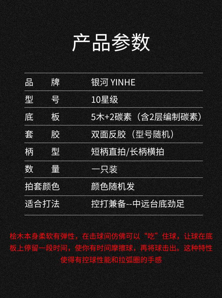 • 银河 乒乓球拍横拍碳素底板 10星兵乓球拍10B长柄附拍套