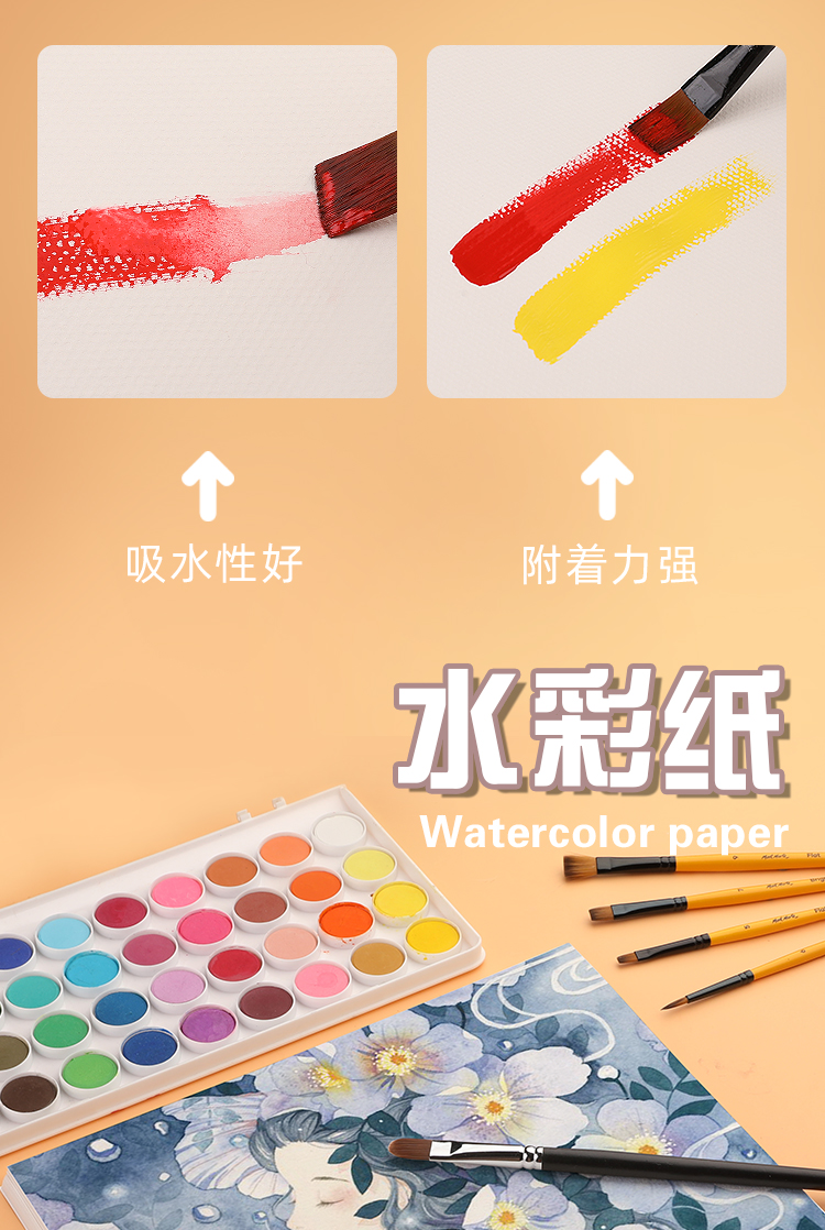 蒙玛特(Mont Marte)棉浆水彩纸180g 美术画画4K画纸儿童水彩颜料画画纸 加厚学生初学绘画色彩绘画纸MSB0088 速写 马克笔绘画   收藏