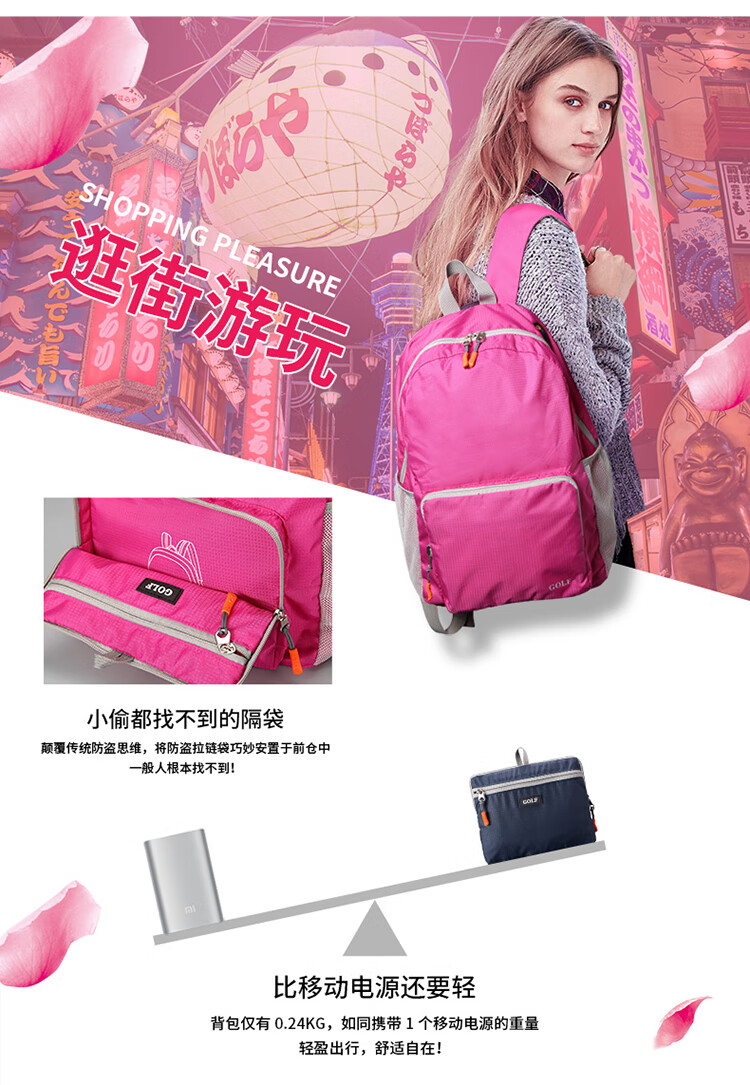 高尔夫(GOLF)时尚轻便可折叠便携双肩背包 | ||