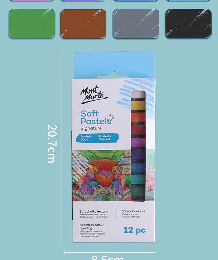 • 蒙玛特(Mont Marte)色粉笔12色 美术画画粉彩笔手绘彩绘绘画工具套装 易洗彩笔颜料专业粉彩棒画笔MMPT0004美术写生