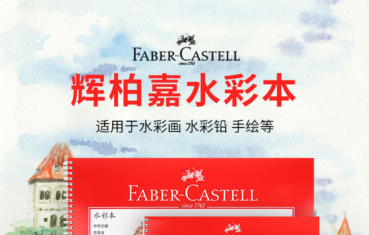 辉柏嘉(Faber-castell)水彩本16K粗纹230g20页/本水彩纸随身写生手绘水溶彩铅本速写马克笔绘画   收藏
