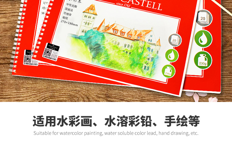 • 辉柏嘉(Faber-castell)水彩本16K粗纹230g20页/本水彩纸随身写生手绘水溶彩铅本速写马克笔绘画