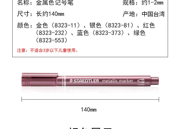 | 国补备案型号 | 施德楼(STAEDTLER)金属色记号笔 1-2mm速干勾线马克笔 学生手账贺卡请帖签名笔5色套装8323-SBK5 |