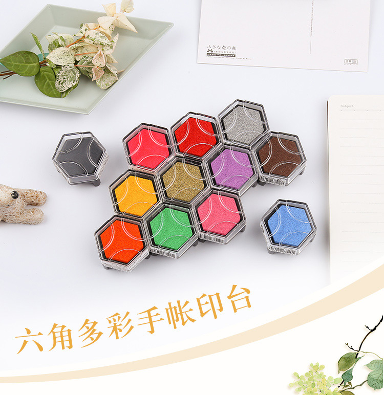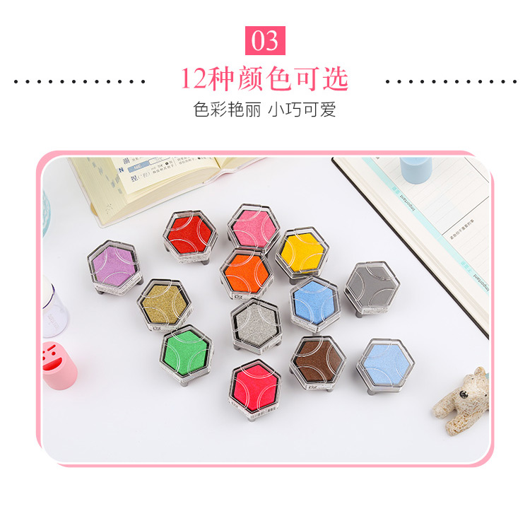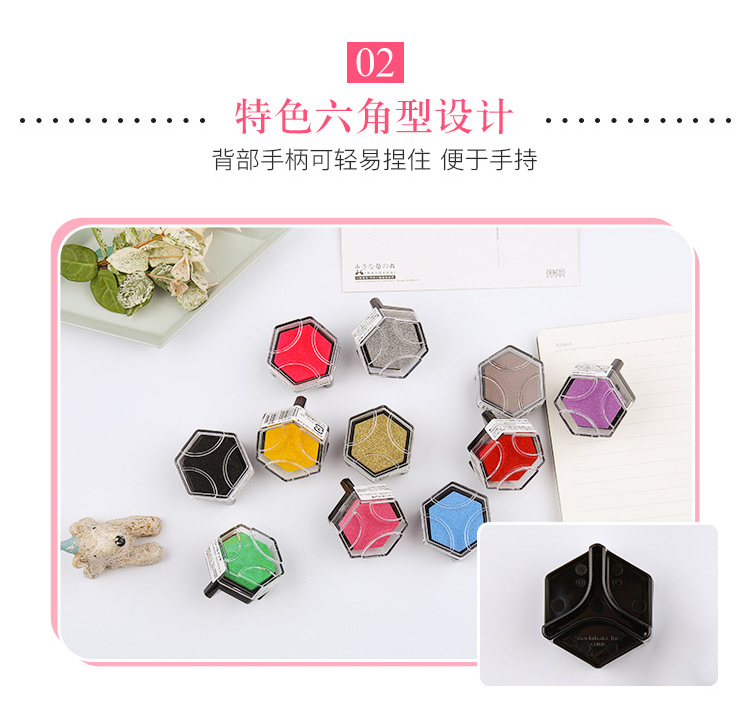 • 【全网低价】旗牌(Shachihata)Artline 办公文具财务小巧趣味六角多彩手帐印台印泥盒 茶色 NI-RV-BR美术写生