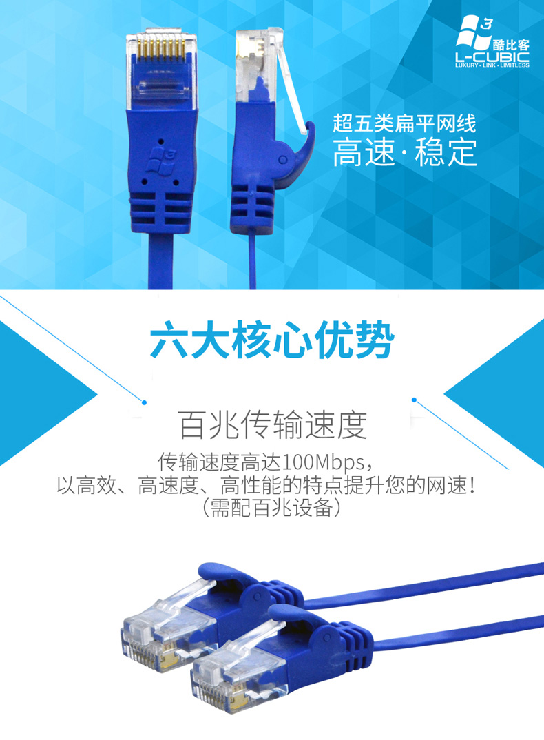 | 其他特性 | 超5类非屏蔽扁平网线,纤薄线体,方便布线 |