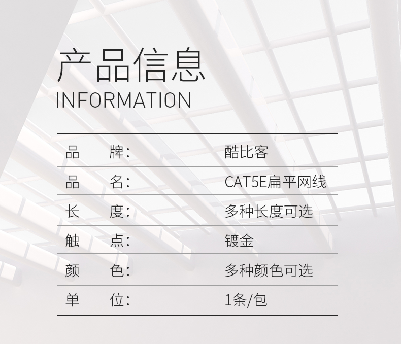 | 其他特性 | 超5类非屏蔽扁平网线,纤薄线体,方便布线 |