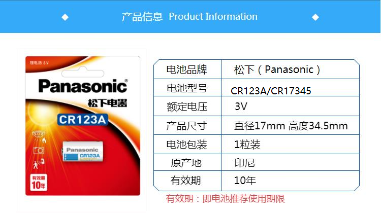 | 包装清单 | 松下CR123A相机电池1粒 |