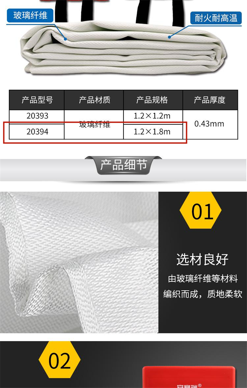 安赛瑞 20394 灭火毯 1.2×1.8m按(个)销售   收藏