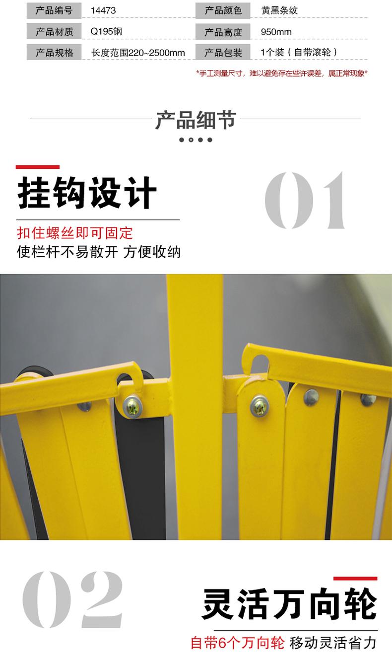 安赛瑞 14473 移动式伸缩围栏 高950mm,长范围220-2500mm按(个)销售   收藏